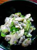 冷凍あさり100〜200gを解凍し、バターをしいた鍋に並べる。酒・砂糖・薄口醤油各大さじ1・塩少々を加えて更に炒め、火が通ったら最後に刻んだネギを加えて火を止める。 |