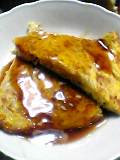 砂糖・ケチャップ各大さじ1・醤油・みりん・酒各小さじ1と水50ccを混ぜたものを煮立て、片栗粉小さじ1を同量の水で溶いた物を加えてとろみをつけ、酢大さじ1を加え、上からかける。 |