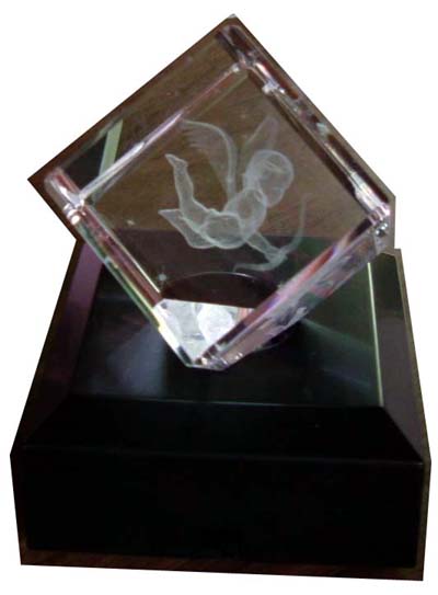 ↓ 「3Dクリスタル」です。台座の放つ光の交差により、暗いお部屋で見るとクリスタルの中の天使がまるで浮かんでいるように。セットで¥2500くらい。 ![]() |